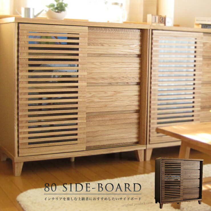 ★マラソンSALE★最大10%クーポン配布中+ポイント?倍定★24日8:59迄★ サイドボード キャビネット リビングボード 無垢 ウォールナット オーク ナチュラル ブラウン 茶 北欧 引戸 スライド扉 完成品 格子 80 cm センチ 幅 送料無料 開梱設置無料